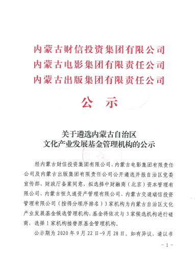 关于遴选内蒙古自治区文化产业发展基金管理机构的公示